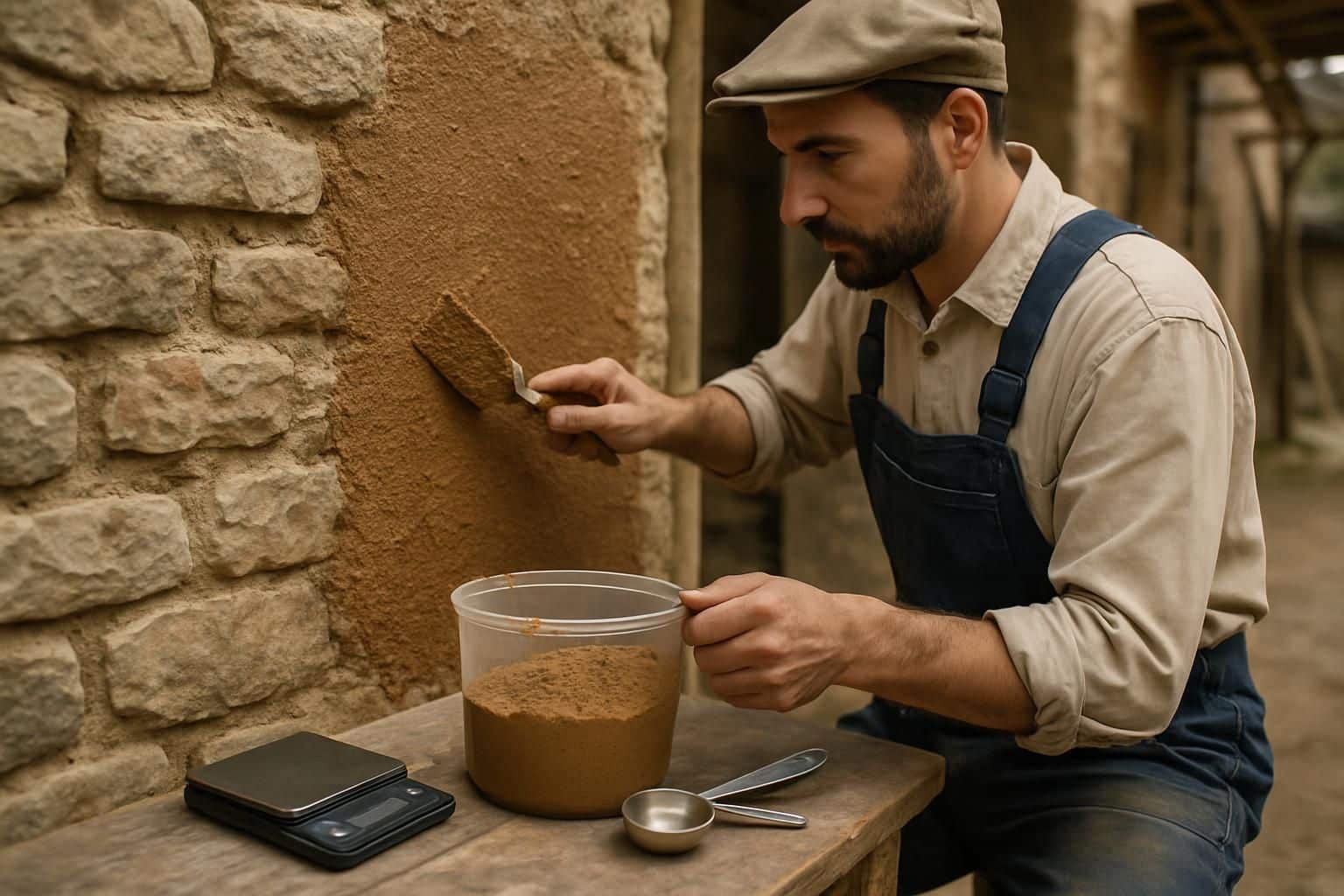 Le dosage du gobetis est fondamental pour assurer sa performance. Généralement, la recette se compose d’un mélange de sable, de chaux hydraulique ou de ciment, et d’eau. Une proportion classique pour préparer le gobetis est d’un volume de liant (chaux ou ciment) pour 1 à 2 volumes de sable. Ce dernier doit être lavé et de préférence à gros grains, de taille variant entre 0 et 5 mm, pour garantir une bonne accroche.