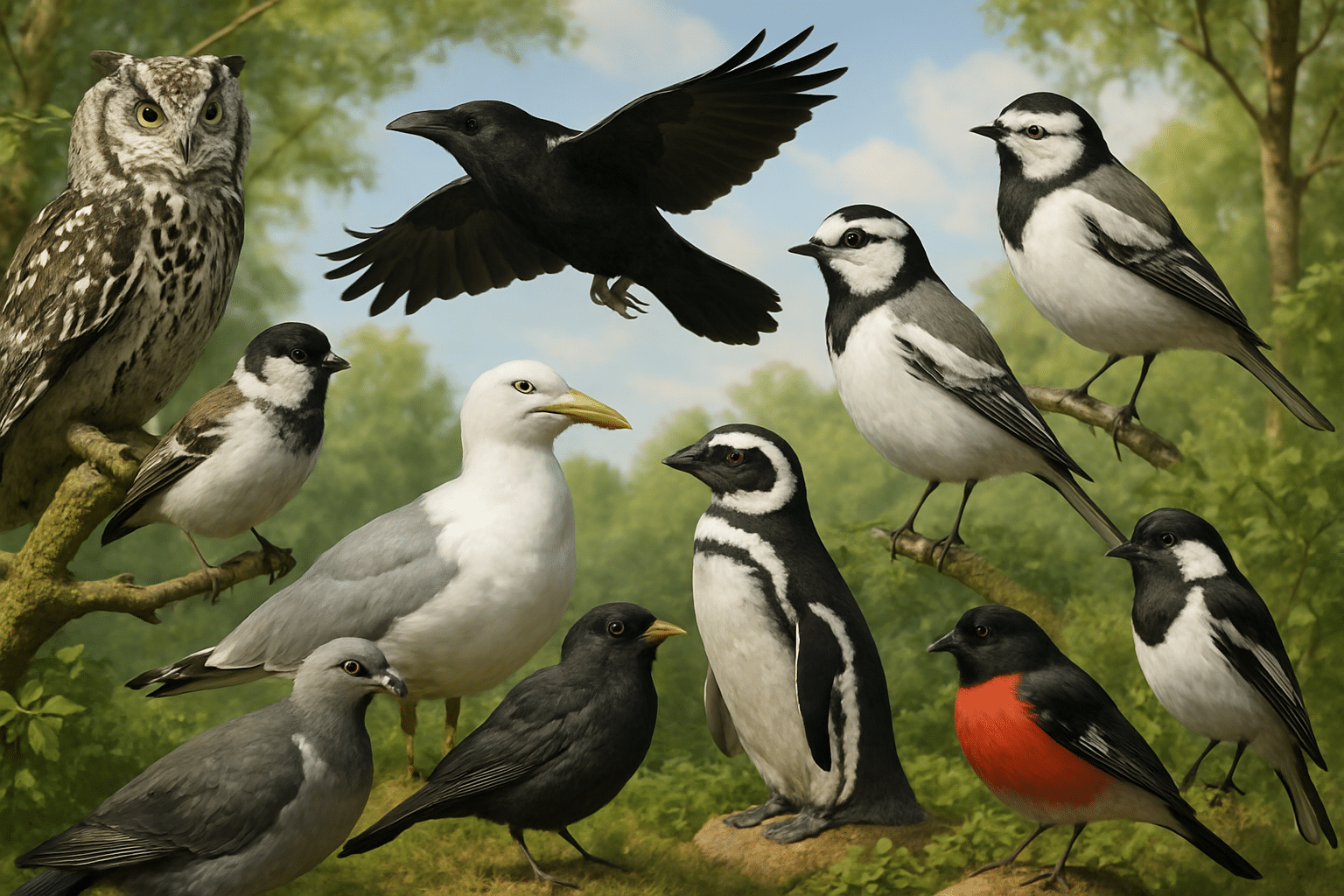 Quels sont les oiseaux noirs et blancs les plus courants ?